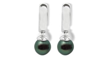 Set in 18K white gold, this exotic and fashionable black Tahitian south sea cultured pearl earring set features two perfectly round, perfectly clean black green pearls. A staple of any woman’s wardrobe, a pearl earring set is a classic that can accompany her through all the most memorable occasions of her life. Black pearls with the sought-after green overtones are amongst the rarest colors. These pearls are “A Quality”, the highest grade of the A, B, C and D nomenclature assigned to grade black Tahitian south sea pearls. The allure of the black pearl is in the way it captures light, refines it and delivers it back in a dark incandescent glow. This earring set features two 9.75mm pearls. Unlike gems that are extracted from the earth and polished, the pearl is the only gem originating from a living organism. American Pearl is widely regarded as perhaps the most reliable and honest source of wholesale pearls anywhere in the world. In business since 1950, American Pearl’s networking legacy is a key reason we are able to operate with the huge patchwork of inside sources and large economy of scale that enable us to import at such drastically reduced pricesÑa savings we happily pass on to our many loyal customers.